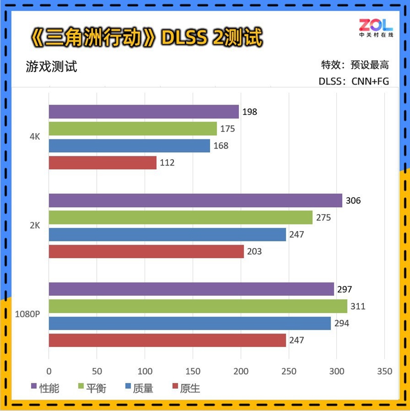 近来同样大火的《三角洲行动》测试中,DLSS 2的结果则有些不同,索泰RTX 5080 16GB天启OC在4K分辨率DLSS质量模式下,达到168帧的帧率,性能模式更是达到198帧。