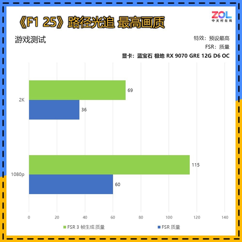 另外值得一提的是,蓝宝石 RX9070 GRE 12G D6 OC凭借RDNA4架构在光线追踪中的进步,《F1 25》即便光线追踪全开,也能在4K分辨率下流畅运行。虽然赛车游戏对帧数要求相对较低,但相比自身上一代产品的提升是巨大的。有兴趣的玩家不妨前往官方店铺详细了解以下。
