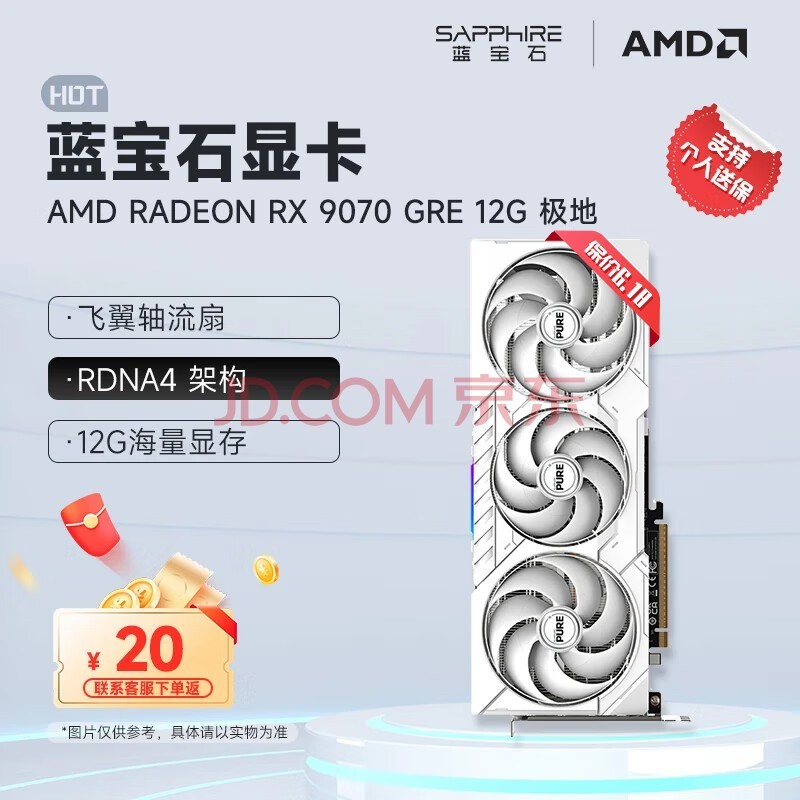 蓝宝石AMD RADEON RX 9070GRE 脉动/合金脉动/极地 系列 deepseek黑神话悟空台式机独立游戏高性能显卡 RX 9070 GRE 12G 极地