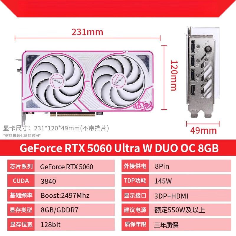 七彩虹 RTX5060Ti 8G/RTX4060/RTX5060战斧AD台式电脑主机独立显卡iGame RTX5060 U 8GB性能强劲专为高性能游戏和创作设计显卡配备8GB大显存支持高画质流畅运行主流3A大作和专业软件无论是玩游戏还是做设计都能带来出色体验京东现正促销此商品参加每满300减5元满1件打9.6折并可使用满3000减60优惠券最终实付价低至3496.15元原价3766.82元现在入手性价比极高喜欢的朋友不容错过
