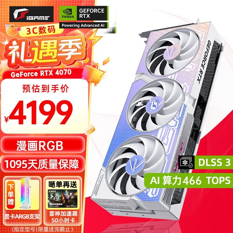 现在在京东购买这款显卡,可以享受到优惠价格。只需4199元即可入手,比原价便宜了很多。而且,这次的优惠活动时间有限,机会难得。如果你是一名游戏爱好者或者需要高性能计算机硬件的用户,那么这款七彩虹 RTX4070显卡将是你不容错过的选择。
