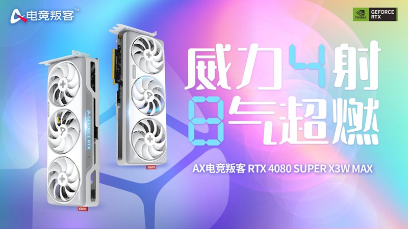 AX电竞叛客RTX 4080 SUPER X3W MAX 16GB采用的是AD103-400核心,具备10240个CUDA核心,16GB 256-bit GDDR6X显存,其核心BOOST频率可提升至2580MHz,而显存频率为23Gbps。