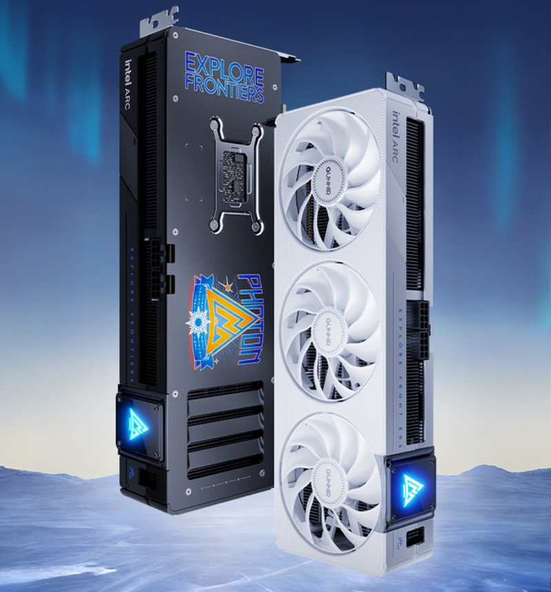 PHOTON是本次蓝戟 Arc B580系列的旗舰系列,共有黑、白两色可选,方便不同装机风格的用户按需选择,其保持了蓝戟PHOTON系列一贯的高规格高水准,用料豪华,做工考究。且全新的B系列PHOTON在外观设计上更加大胆前卫,满足年轻玩家对显卡外观上的要求。