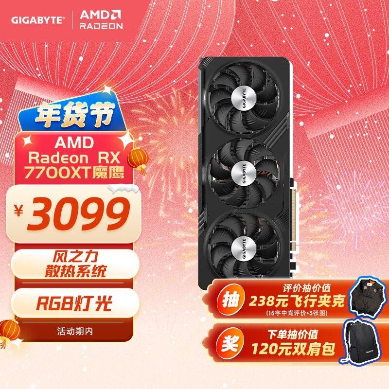 技嘉 RX7700XT GAMING OC RDNA3架构 12GB GDDR6游戏电竞视频剪辑显卡