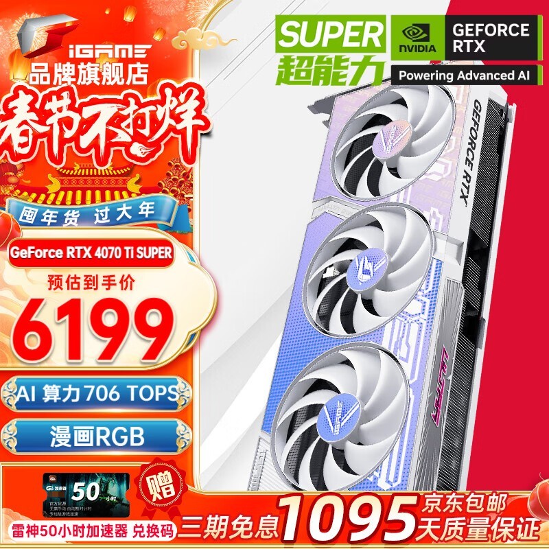 这款七彩虹 RTX4070Ti SUPER Ultra W OC显卡,搭载了全新的Ampere架构和第三代光追技术,能够提供卓越的游戏性能和图像渲染效果。七彩虹 RTX4070Ti采用双风扇设计,保证了其在高负载下的稳定运行,并配备了最新的散热技术和智能温控系统,有效降低了产品的工作噪音和温度。此外,七彩虹 RTX4070Ti还拥有出色的网络连接性能和扩展性,支持多种接口类型和高清视频输出格式。现在参与的优惠活动可以享受满7599立减1600的优惠价格,值得推荐!