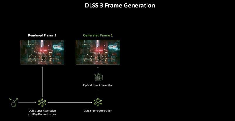DLSS多帧生成能够通过每个传统渲染帧,生成多达三帧的额外帧来提高FPS。新的帧生成AI模型相比之前的帧生成方法快40%,使用的显存减少30%,并且每个渲染帧只需要运行一次就可以生成多个帧。高效的AI模型代替了上一代的硬件光流模型,从而加快了光流场的生成速度,并显著降低了生成额外帧的计算成本。