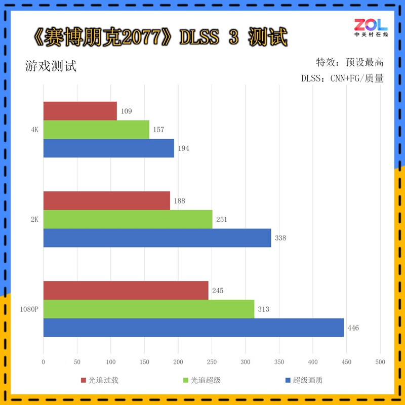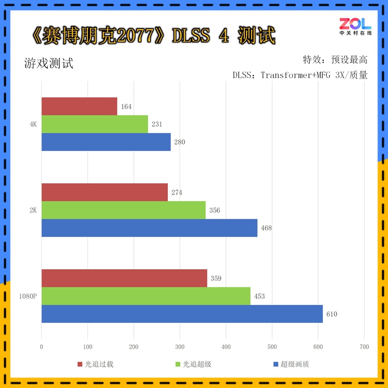 另外注意,在1080p分辨率的超级画质中,已经达到了惊人的610帧!虽然仅仅是超级画质,但这依然是标准的3A游戏《赛博朋克2077》。