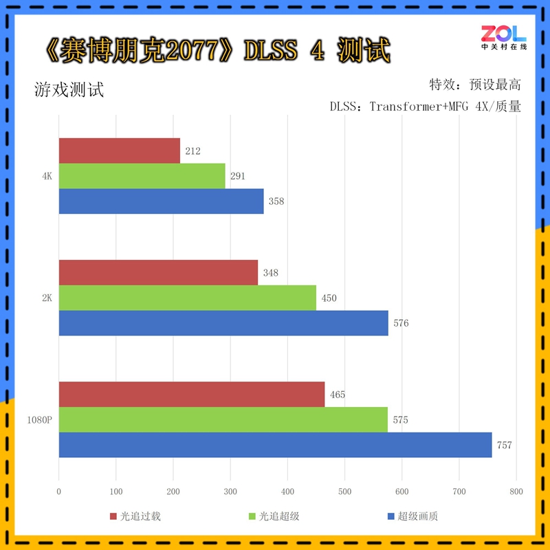 不过在DLSS 4开始使用Transformer模型,并开启多帧生成之后,帧率进一步得到大幅提升。