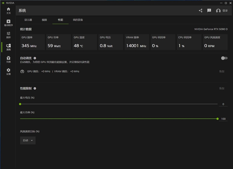 其中性能界面提供了较为详细的监控和超频选项,需要注意的是新手如果想尝试超频,尽量不要改变电压,这个选项轻则掉驱动,重则烧毁显卡。