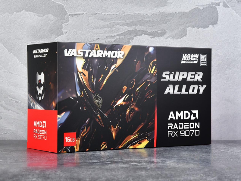 就在前不久,AMD在珠海正式发布了RX 9000系显卡,其中首发的两款型号分别是RX 9070以及RX 9070 XT,今天我们收到了瀚铠VASTARMOR Radeon RX 9070 超合金,作为AMD Radeon RX 9000系列中的非旗舰型号,瀚铠VASTARMOR Radeon RX 9070 超合金定位介于RX 9070XT与RX 9060系列之间,搭配16GB GDDR6显存,主要面向2K/4K分辨率的高画质游戏需求。