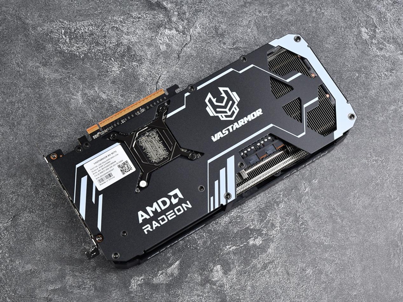瀚铠VASTARMOR Radeon RX 9070超合金采用强化金属背板搭配高品质高密度的PCB板设计,不仅能保护电路元器件不受冲击和静电的影响,有效提升了耐久性以及信号稳定性;同时还能分散显卡的散热压力,并优化后端排放。