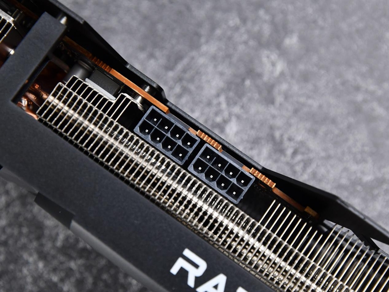 瀚铠VASTARMOR Radeon RX 9070 超合金采用了双8PIN的供电设计,且供电口区域在背板的外观设计上做了切割,方便用户拔插电源线。