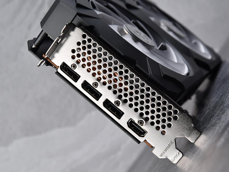 至于接口方面,瀚铠VASTARMOR Radeon RX 9070超合金拥有1个HDMI以及3个DP接口,方便用户外接多台显示器体验,而在另一侧侧板上则配有1个神光同步线缆接口。