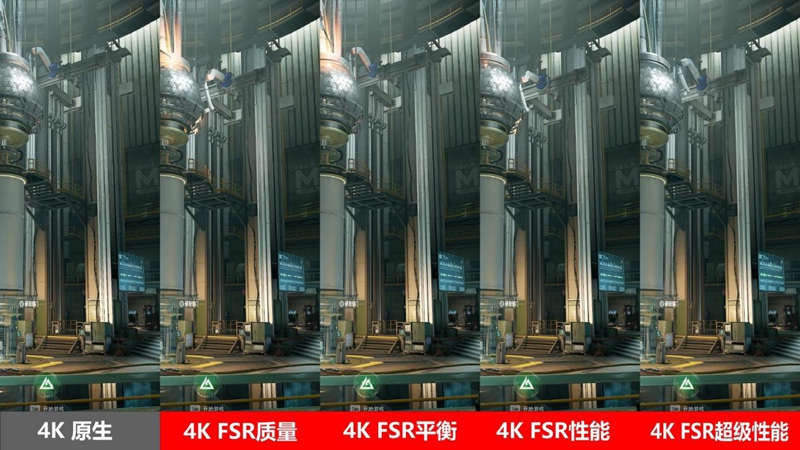 此外游戏中的FSR技术提供了多种模式可选,以上展示了不同模式下画面质量的对比。总体而言,4K原生画质更为精致,而随着FSR档位从质量模式降至超级性能模式,画面细节会呈现细微差别。若仔细观察,可以辨识出贴图细节和光影效果上的不同。然而在实际游戏体验中,这些画面差异通常不会那么显著。