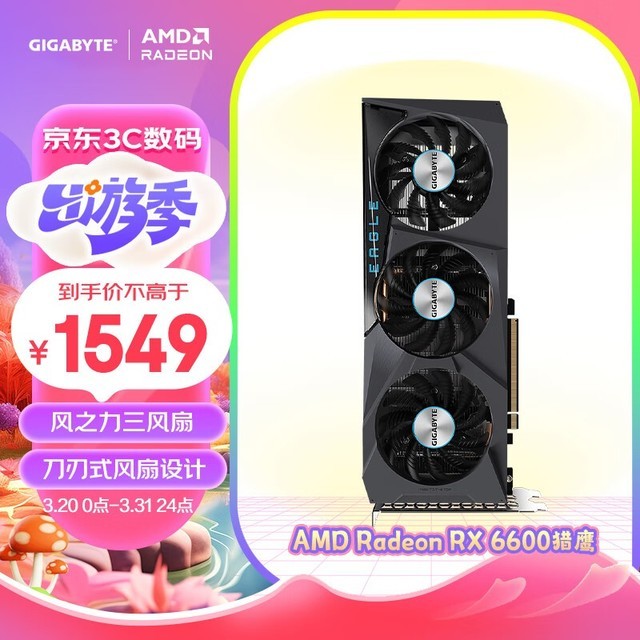 技嘉 RX6600 EAGLE 8G电竞游戏设计智能学习电脑独立显卡支持4K