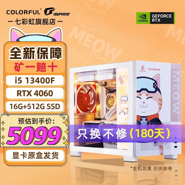 七彩虹 RTX3070Ti i5 13400F/4060TI 8G显卡橘影橙 橘猫定制款 游戏直播设计电脑主机台式组装机 配二:13400F丨16G丨512G丨4060