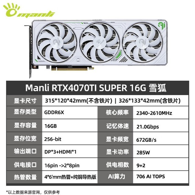 万丽 RTX4070Ti SUPER 16GB DLSS 3 设计Ai运算渲染台式游戏独立显卡 RTX 4070tisuper 16G 雪狐