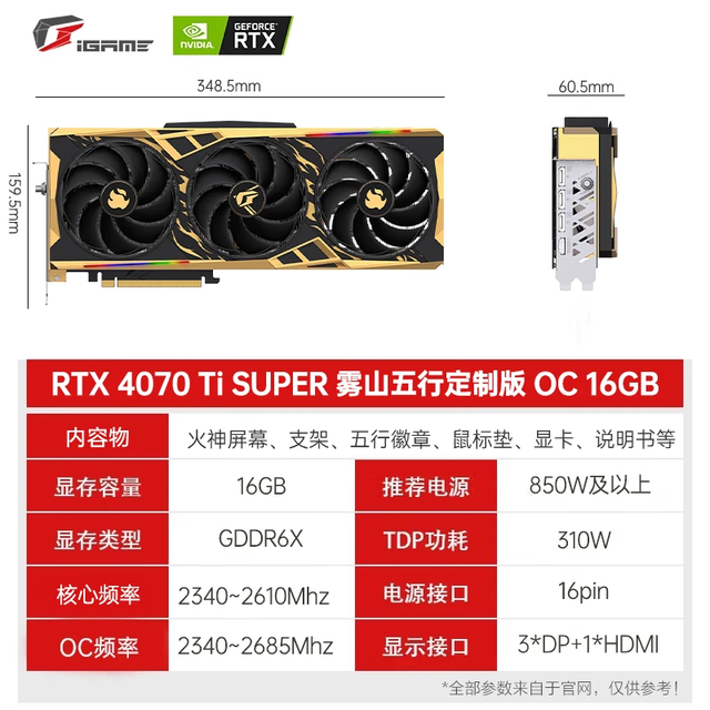 七彩虹 RTX4070Ti SUPER雾山五行是一款具有出色图形处理能力和游戏性能的高性能显卡。采用先进的NVIDIA DLSS技术可以大大提高帧数,在保证画质的同时,让你在游戏中获得更好的视觉体验。此外,它还支持超频功能,可以根据用户需求进行调整,以获得最佳性能。现在买的时候还可以享受3000元减500元的优惠活动,从8099元开始,性价比极高。如果你是一个需要大规模计算任务的游戏玩家或用户,那么这个显卡将是你最好的选择!