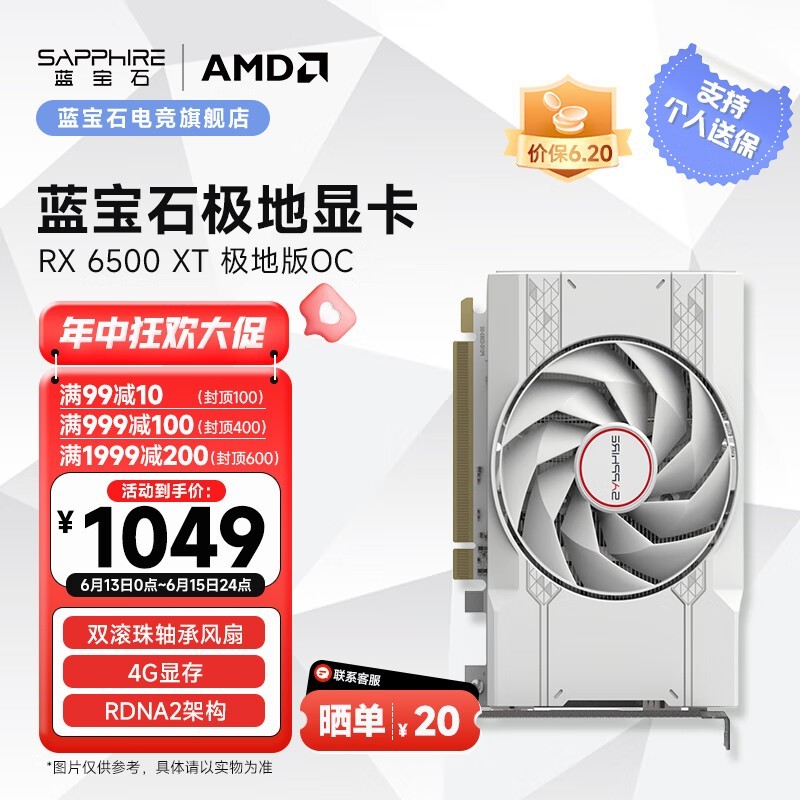 蓝宝石 RX6500XT 系列 台式机独立游戏显卡 RX6500XT 4G 极地版