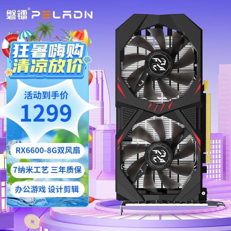 磐镭 RX6600显卡,性能强,设计独特。磐激采用GDDR6高速数据存储RX6600显卡,有效提高了游戏画面的效果和运行速度。128bit显存带宽,大大提高了数据传输效率,使大型游戏处理更加顺畅。双风扇设计,散热效果极佳,保证了显卡在高负荷下的稳定运行。另外,磐激 RX6600还具有超频功能,玩家可根据自己的需要进行调整。现在京东活动售价1399元,每满1399元下单减100元,plus减3.5元,实付只需1295.5元,好价钱难得。假如你是一个热爱游戏的用户,或者需要一个高性能的显卡来改善计算机配置,那么这个盘激 RX6600显卡将是您的最佳选择。