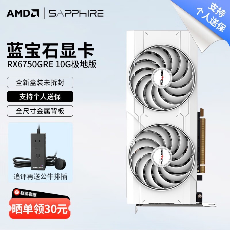 蓝宝石 RX6750 GRE 10G 12G海外版RX6750XT 6600 8G白金 黑钻 极地白色游戏显卡电脑独立显卡台式显卡 RX6750GRE 10G 极地 白色