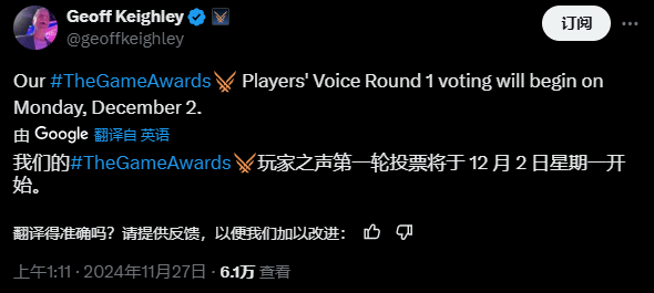 首先是12月2日开启的玩家之声,该奖项100%是由玩家投票评选出来的,也就是说,哪款游戏玩家投票越多,就能获得评选,比如去年就由《博德之门3》获得,同时也是年度最佳游戏,那么今年玩家最期待的,最受欢迎的,还是狂卖2千多万份的《黑神话:悟空》,在如此高销量以及高质量的加持下,这届玩家之声,黑神话很有可能拿下。