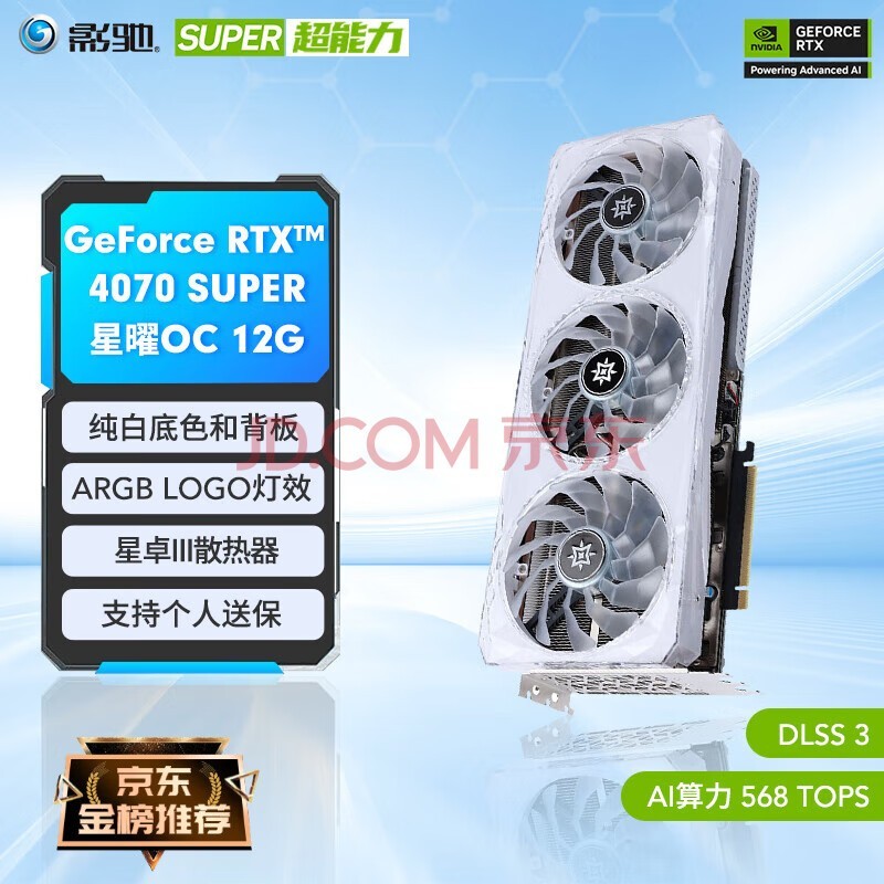 影驰 GeForce RTX 4070 SUPER新品RTX4070S显卡/RTX4070 GDDR6X DLSS3 视频直播台式机电脑电竞游戏显 RTX4070 SUPER 星曜OC