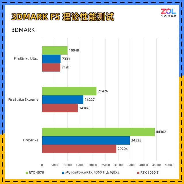 简单来说,该项测试是对近年来新技术,及未来游戏的综合测试。对比RTX3060Ti显卡,从1080p分辨率到4K提升依次为:12%/10%/6%。