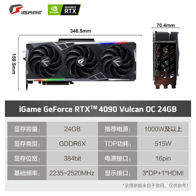 七彩虹 RTX4090 Vulcan 火神 OC 24GB是一款高性能显卡,拥有卓越的游戏性能和出色的图形处理能力。七彩虹 RTX4090采用了最新的NVIDIA Ampere架构,配备了强大的GDDR6内存和第三代光追技术,使得游戏中的细节更加清晰、画面更加真实。此外,它还支持DirectX 12 Ultimate技术和DLSS 2.0人工智能加速等先进技术,可以让玩家在游戏中获得更流畅的体验。