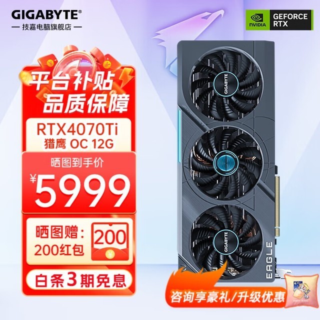 技嘉 RTX4070Ti显卡促销中,原价6199元的技嘉 RTX4070Ti显卡,活动售价仅需5999元!京东独家优惠,晒单还返200元。这款显卡基于全新设计的Ada Lovelace GPU架构打造,核心面积达到295 mm?,包含35.88亿个晶体管数量,总计有7680个CUDA核心流处理器和12GB GDRR6X显存。此外,技嘉 RTX4070Ti支持最新的NVIDIA DLSS 3技术,并且在DLSS 3的帮助下,游戏性能最高可以提升4倍。