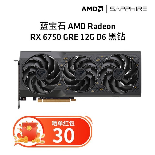 蓝宝石 RX6750 GRE 游戏显卡电脑独立显卡 RX 6750 GRE 12G 黑钻