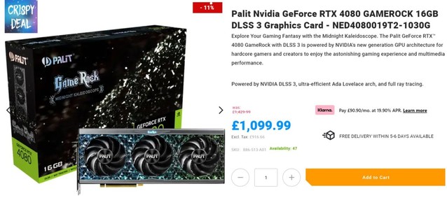 根据英国的价格比较服务,目前最便宜的RTX4080是1,199英镑的palitgamerockomoniblack。AWD-IT提供的卡几乎是同一张卡,但也有一些额外的RGB照明。另外,值得注意的是,这不是OC模型,所以应用了股票时钟。