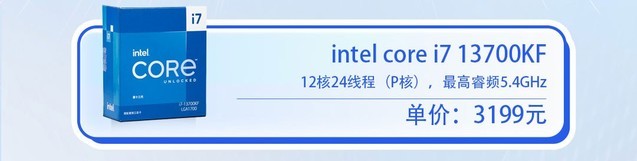 英特尔 i7-13700KF 13代 酷睿 处理器 16核24线程 睿频至高可达5.4Ghz 30M三级缓存 台式机CPU