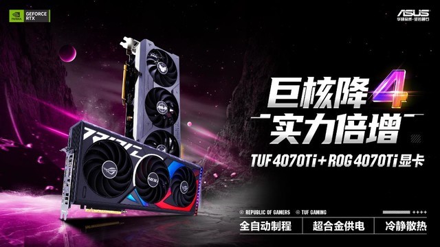 RTX4070Ti显卡显卡涵盖了ROG STRIX 和TUF Gaming两个系列,基于全新AdaLovelace架构的GPU,能够为游戏玩家和创作者提供革命性性能,为玩家和创作者带来了性能、神经渲染和更多领先平台功能的飞跃,全力助力您体验更流畅的光线追踪表现,助力每个玩家及创作者释放全部实力!