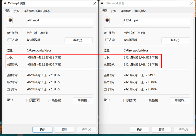 由于AV1编码特性,生成文件的比特率更低,但视频清晰度则完全相同。所以如果生成同比特率,同容量的文件,AV1将会更清晰。