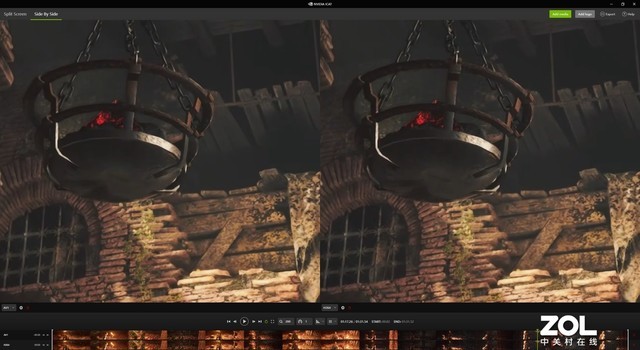 我们通过NVIDIA ICAT来进行两段视频的画面对比,图中左侧为AV1编码,右侧为H264编码。通过200%的细节放大,几乎看不出任何区别。