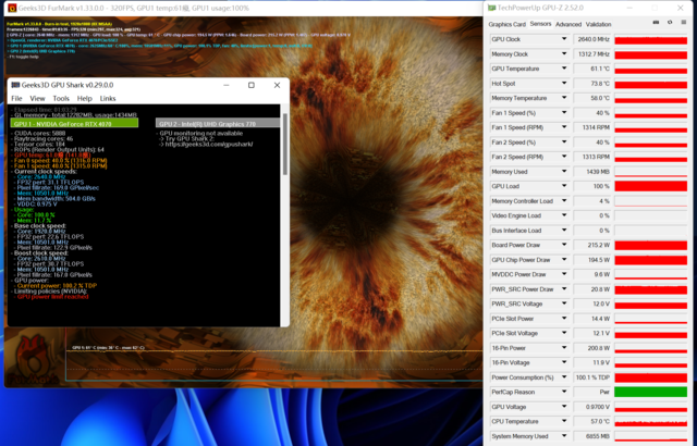 功耗测试中,我们选择FurMark软件进行拷机测试,并采用GPU-Z检测温度,功耗仅计算显卡自身。