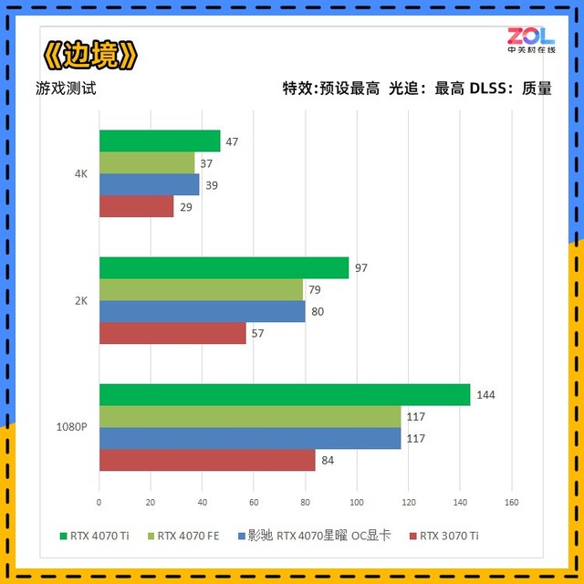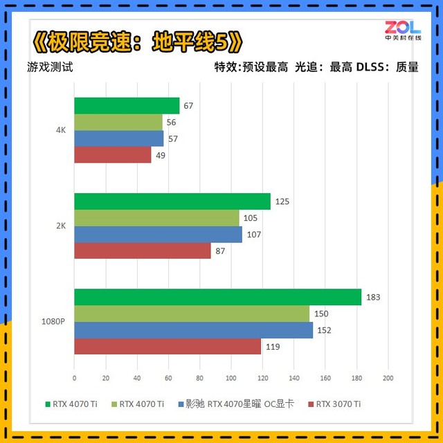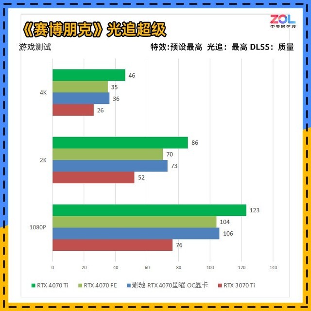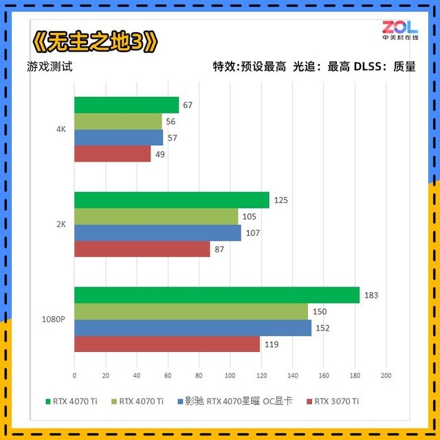 对比RTX3070Ti显卡,影驰 RTX4070 星曜 OC显卡从1080p分辨率到4K提升依次为28%/22%/28%。