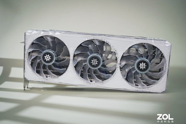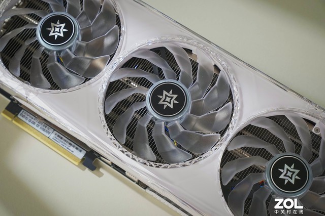 影驰 RTX4070 星曜 OC显卡采用了三风扇设计,每个风扇特制直径102mm、厚度20mm,拥有11片静霜扇叶,通过对扇叶进行弯折,实现更强风力和更大风量,并且还支持智能启停,高负载时启动,低负载时静止,保证静音与能效的平衡。