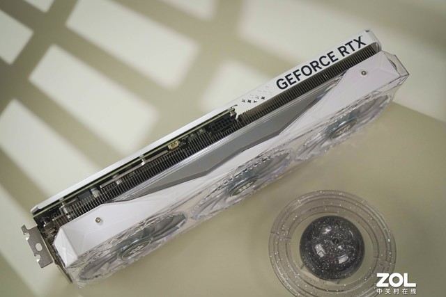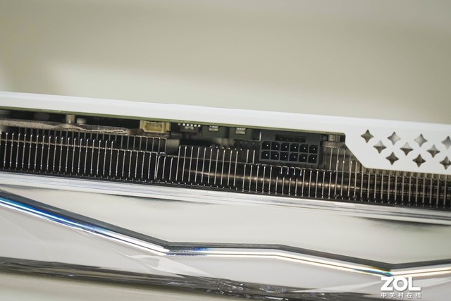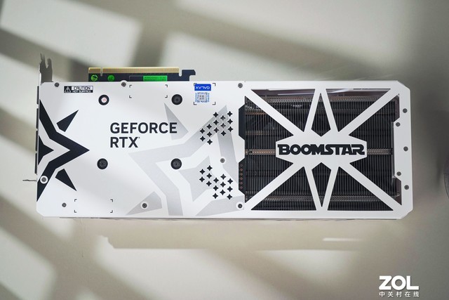 影驰 RTX4070 星曜 OC显卡背板采用金属设计,纯白配色结合星曜丝印LOGO,鳍片附近背板采用大面积镂空设计,风扇组建更合理,8层PCB板的设计也拥有更高的抗干扰和可靠性。