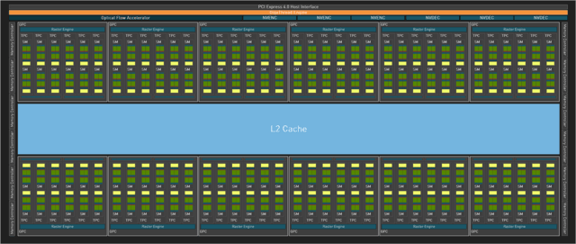 本次RTX4070使用了AD104芯片,采用了4组GPC,其中1组少了1组TPC,并且NVENC单元变为2个。
