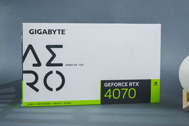 本次技嘉 RTX4070雪鹰的包装非常简洁,除了NVIDIA规范的型号区域,整体以纯白色为主,系列名称AERO居左,并且采用了比较有设计感的字体。