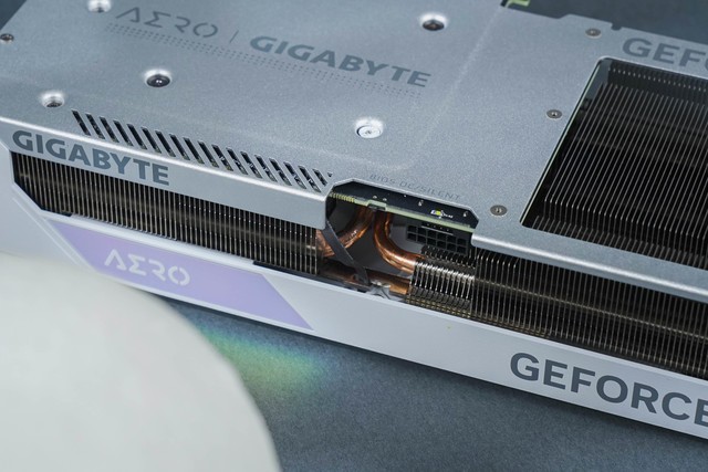 技嘉 RTX4070雪鹰的背板整体采用了裸色金属,并且在尾部拥有大面积镂空进气格栅,能够看到PCB只有显卡整体的一半左右。