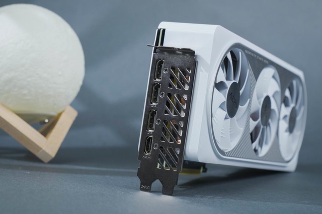 视频输出接口上,依旧采用了HDMI 2.1 + DP 1.4a*3的四接口设计。HDMI 2.1可支持4K 120Hz HDR、8K 60Hz HDR。