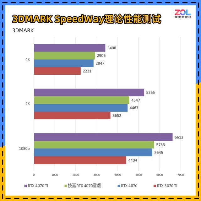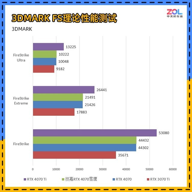 而对比刚刚发布的RTX4070Ti,综合成绩相差20%左右。