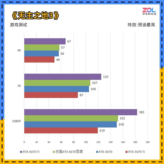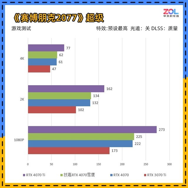 性能上,RTX 4070可以在3A游戏中,2K分辨率下达到百帧的成绩,而且我们所测试的游戏画面均为中上等。至于4K,目前大部分独立游戏或者网游也都没有问题。