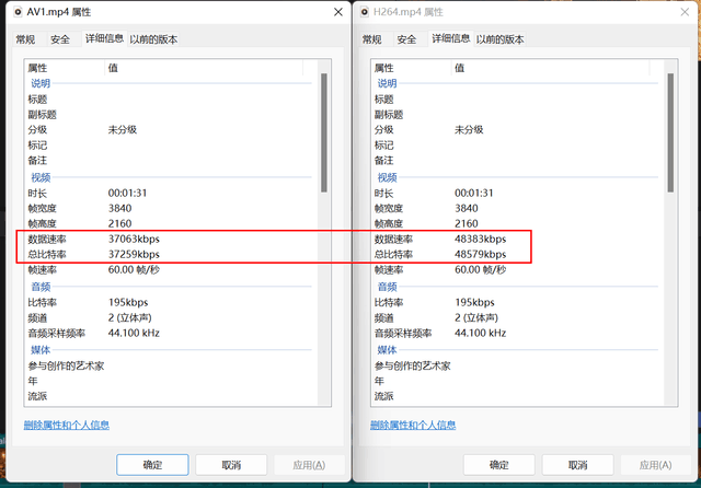 由于AV1编码特性,生成文件的比特率更低,但视频清晰度则完全相同。所以如果生成同比特率,同容量的文件,AV1将会更清晰。