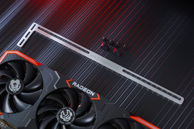 瀚铠 RX7900XTX超合金的尺寸约为330×134×69mm,在目前两家的新产品中也属于比较大的。另外考虑到显卡本身的重量,包装内附赠了金属显卡支架,以避免PCB弯折的情况。