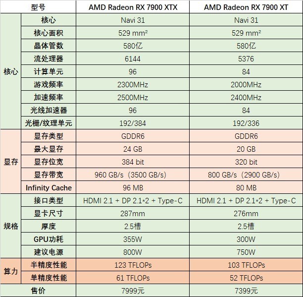 显存方面,近几代的AMD显卡从未出现24GB的大显存,看来也是对这次的XTX型号有着充分信心。