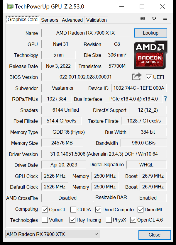 瀚铠 RX7900XTX这张显卡颇为特殊,采用了非常规的24GB大显存以及“XTX”后缀来命名,目的就是为了纪念7900将AMD显卡提升至前所未有的高度。